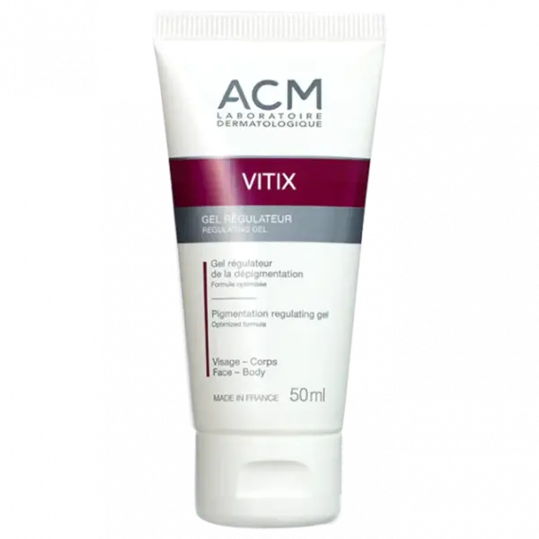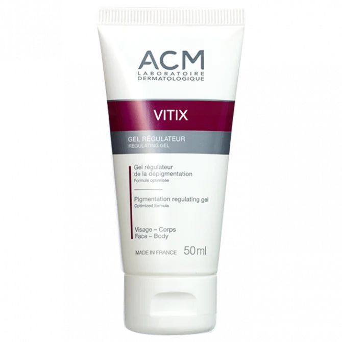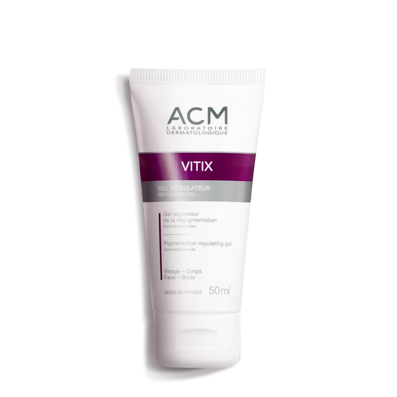 Soin quotidien pour le visage et le corps, le gel régulateur Vitix, produit par ACM, est conçu pour lutter contre l’apparition des taches et des pigmentations, notamment, ceux induites par le vitiligo. D’après plusieurs études cliniques, ce gel prévient la progression de la pigmentation induite par le vitiligo. Ce gel peut aussi être utilisé comme complément de photothérapie ou héliothérapie.