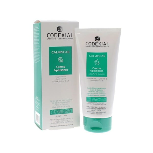 Codexial Calmiscab est une crème apaisante et hydratante, efficace contre les tiraillements et les démangeaisons. Conçue pour les besoins des peaux sensibles et sèches, cette crème hydrate durablement l’épiderme, et élimine les sensations d’inconfort cutané, généralement dues au dessèchement et aux irritations. Grâce à sa teneur en sulfate de zinc et en calamine, cette crème assainit la peau, et renforce son hydratation naturelle.