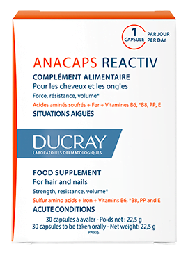 Anacaps, complément alimentaire produit par Ducray, favorise la santé du cuir chevelu. Il aide à contrer la chute des cheveux, et les ongles cassants grâce à une teneur en plusieurs nutriments. Les chutes des cheveux passagères sont généralement liées au stress, ou à une carence en certains nutriments.