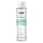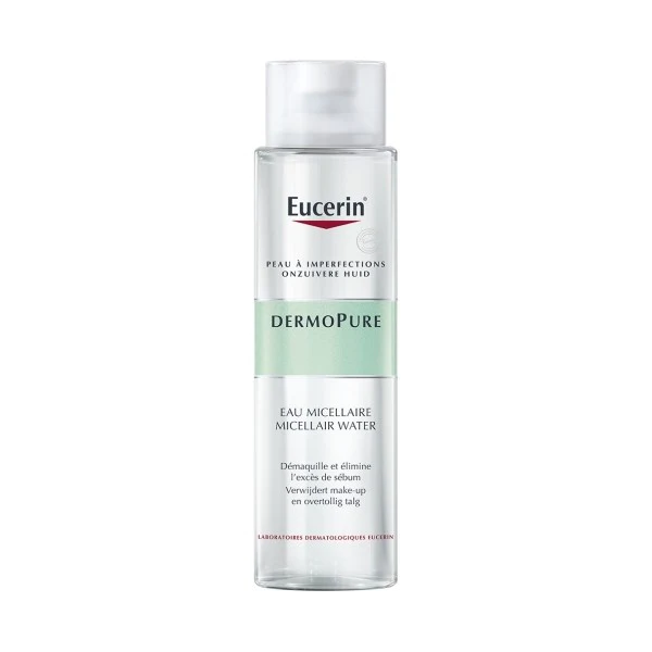L’eau micellaire Eucerin Dermopure est un nettoyant délicat, convenable aux peaux grasses et sujettes aux imperfections. Sa formule équilibrée en fait un soin optimal, d’une action antibactérienne très efficace. Idéale à utiliser comme démaquillant, ce nettoyant désobstrue les pores, et normalise les sécrétions cutanées, notamment le sébum, pour prévenir l’apparition des impuretés.