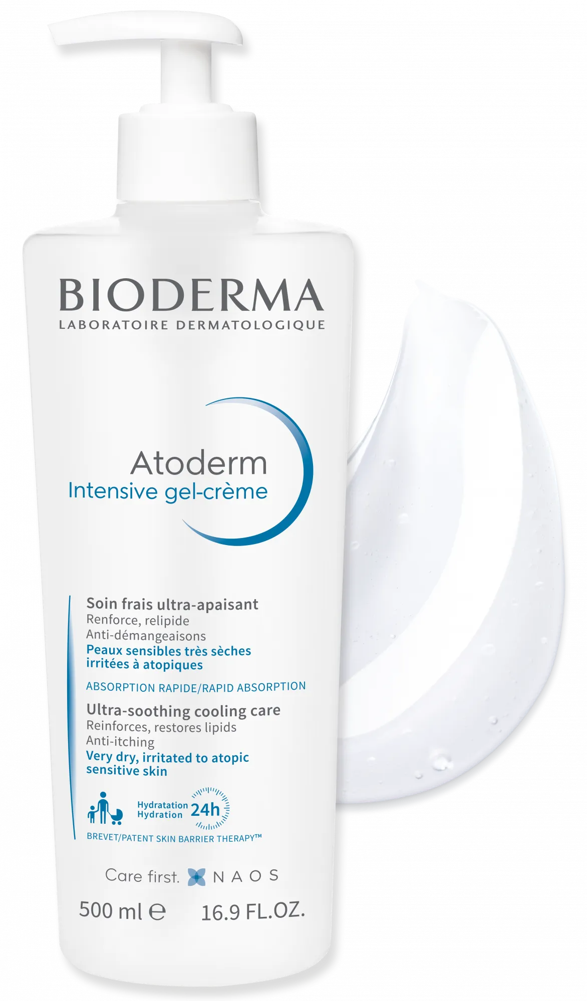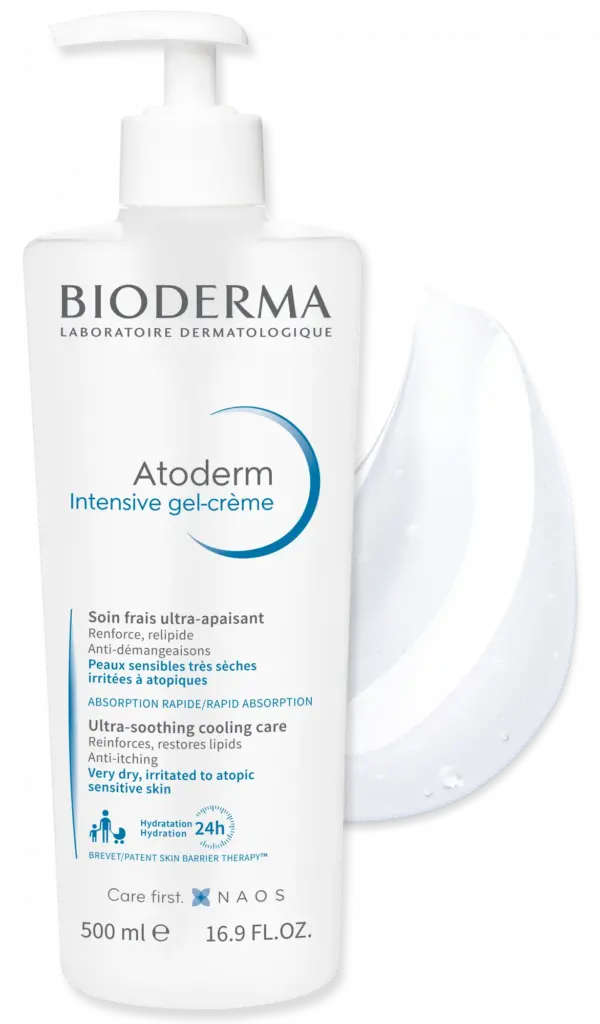 Enrichi en actifs naturels, le gel crème Bioderma Atoderm Intensive apporte un effet anti-inflammatoire qui procure une sensation apaisante et délicate; grâce à sa teneur en Enoxolone. La présence de la Vitamine PP stimule la régénération du film hydrolipidique, et prévient l’adhésion des bactéries à la surface de la peau.