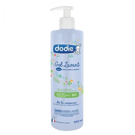 - Appliquer le gel Dodie 3 en 1 sur une peau, ou des cheveux, humides et nettoyés.