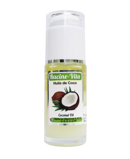 L’huile de coco Racine Vita est constituée des acides gras insaturés (notamment l’oméga 3, et l’oméga 6). Elle est aussi riche en vitamine E, A et C. Cette combinaison apporte un complexe de soins. Elle protège la peau contre les stress oxydatif, et prévient ainsi l’apparition des impuretés et de signes du vieillissement cutané.