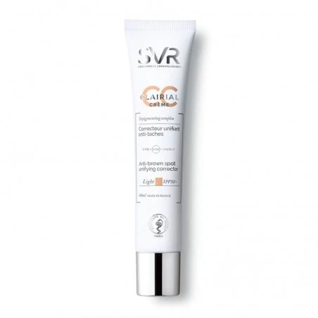 La crème SVR Clairial CC apporte un soin dépigmentant et correcteur, parfaitement convenable aux peaux sensibles, et sujettes aux imperfections. Cette crème aide notamment à unifier le teint, et à corriger les taches pigmentaires induites par le soleil. Elle réduit les taches dès les premières semaines d’usage.